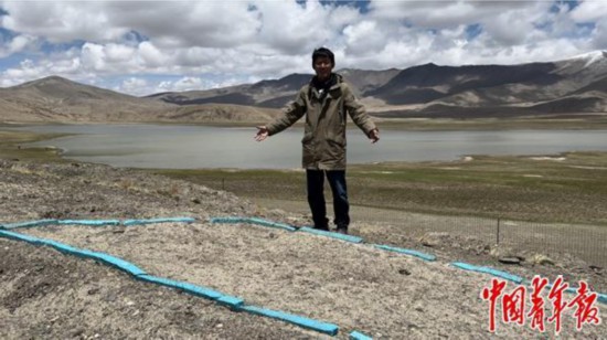 夏格旺堆在瑪不錯遺址。中青報·中青網(wǎng)記者 張玘云/攝
