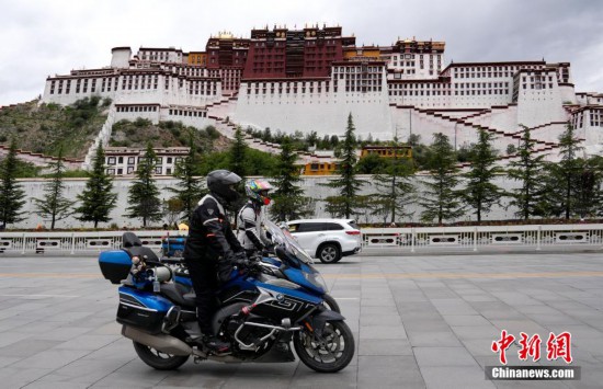 7月3日,摩旅愛好者自駕經(jīng)過布達拉宮。隨著暑期旅游旺季的到來,進藏自駕游成為旅行愛好者的熱門選擇。房車愛好者、摩旅愛好者選擇自駕抵達拉薩,專程途經(jīng)布達拉宮打卡。中新社記者 李林 攝