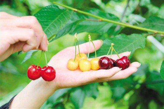 種植基地生產的不同品種車厘子。記者 謝筱純 王珊 攝