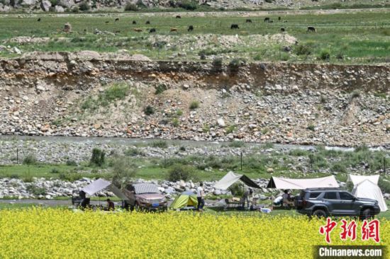 圖為市民在楚布溝里“過林卡”。中新社記者 貢嘎來松 攝