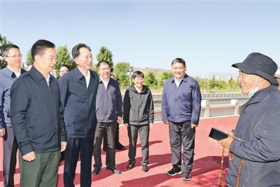 7月8日,自治區(qū)黨委書記王君正在拉薩調(diào)研舊城改造提升工作。這是王君正在拉薩河內(nèi)河兩岸步行道調(diào)研時與群眾親切交談。 記者 白瑪澤旺 攝