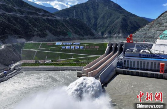 7月9日,航拍巴塘水電站景色。巴塘水電站位于四川省巴塘縣與西藏自治區(qū)芒康縣交界處的金沙江上游,是國家“十四五”規(guī)劃重大工程之一。電站共安裝3臺25萬千瓦混流式水輪發(fā)電機(jī)組,總裝機(jī)容量75萬千瓦,正常蓄水位2545米,總庫容1.42億立方米。(無人機(jī)照片)中新社記者 王磊 攝
