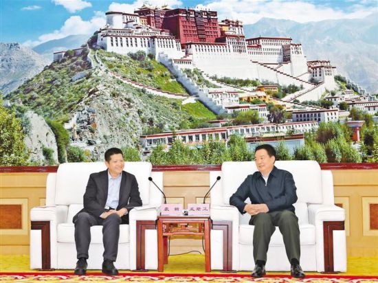 近日,自治區(qū)黨委書(shū)記王君正在拉薩與復(fù)旦大學(xué)黨委書(shū)記裘新一行座談。