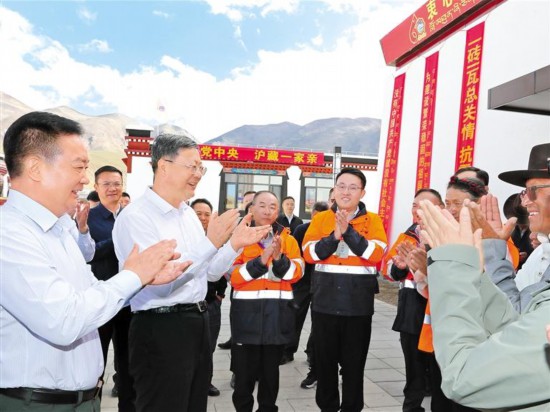 今年1月7日日喀則市定日縣發(fā)生6.8級地震,造成大量房屋倒塌或受損,群眾生活不同程度受到影響。在自治區(qū)黨委的堅(jiān)強(qiáng)領(lǐng)導(dǎo)和統(tǒng)一部署下,上海市援藏力量全力以赴,助力推動災(zāi)后恢復(fù)重建工作。目前,部分重建新房已拆下了腳手架,實(shí)現(xiàn)了封頂。代表團(tuán)來到定日縣長所鄉(xiāng)森嘎村,走進(jìn)村民臨時集中居住點(diǎn),察看生活設(shè)施和居住環(huán)境,同卓嘎、達(dá)娃玉珍一家人圍坐在一起聊家常,關(guān)切詢問受災(zāi)情況,詳細(xì)了解生產(chǎn)生活和需要解決的實(shí)際困難。達(dá)娃玉珍告訴滬藏兩地領(lǐng)導(dǎo),房子在地震中受損倒塌了,共產(chǎn)黨帶著我們建起了更好的新家,就盼著搬進(jìn)新家了??疾鞛?zāi)后重建新居時,代表團(tuán)認(rèn)真聽取上海助力定日縣抗震救災(zāi)和災(zāi)后恢復(fù)重建等情況介紹,仔細(xì)察看施工細(xì)節(jié),了解服務(wù)設(shè)施配套建設(shè)情況,看望慰問村民代表和規(guī)劃建設(shè)代表。兩地同志表示,要深入貫徹落實(shí)習(xí)近平總書記重要指示精神,著眼宜居安居,堅(jiān)持科學(xué)施工,有序推進(jìn)災(zāi)后恢復(fù)重建工作,為受災(zāi)群眾重建美好家園、共創(chuàng)幸福生活。要努力打造凝聚人心工程、民族團(tuán)結(jié)工程、高質(zhì)量發(fā)展工程,讓各族群眾更加深刻感受到以習(xí)近平同志為核心的黨中央對西藏人民的關(guān)心關(guān)愛,讓各族群眾更加深刻感受到社會主義制度的優(yōu)越性和祖國大家庭的溫暖,更加自覺鑄牢中華民族共同體意識。