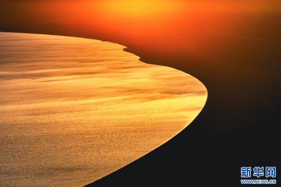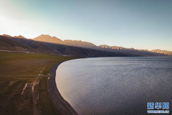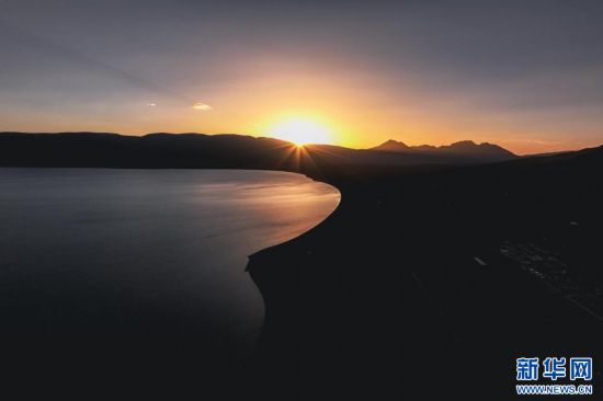 圖為夕陽下的當(dāng)惹雍錯( 7月5日攝,無人機照片)。新華網(wǎng)發(fā) 車宇軒 攝