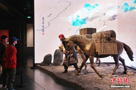7月15日,在位于西藏拉薩的西藏博物館。觀眾參觀茶馬古道復原場景。據了解,西藏博物館設有基本陳列《雪域長歌—西藏歷史文化展》《離太陽最近的人—西藏民俗文化展》,充分展示西藏地區(qū)歷史發(fā)展進程與文化面貌。中新社記者 張祥毅 攝
