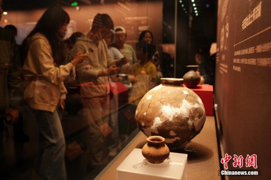 7月15日,在位于西藏拉薩的西藏博物館,卡若遺址出土的陶器吸引觀眾。據了解,西藏博物館設有基本陳列《雪域長歌—西藏歷史文化展》《離太陽最近的人—西藏民俗文化展》,充分展示西藏地區(qū)歷史發(fā)展進程與文化面貌。中新社記者 張祥毅 攝