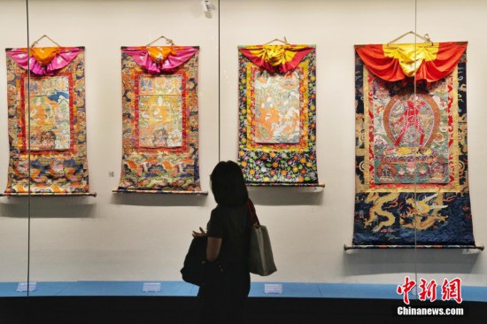 7月15日,在位于西藏拉薩的西藏博物館,觀眾品鑒唐卡藝術。據了解,西藏博物館設有基本陳列《雪域長歌—西藏歷史文化展》《離太陽最近的人—西藏民俗文化展》,充分展示西藏地區(qū)歷史發(fā)展進程與文化面貌。中新社記者 張祥毅 攝