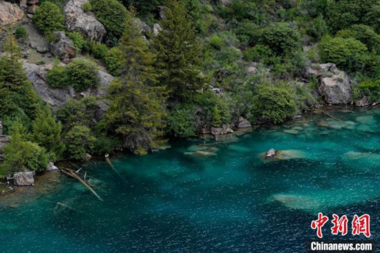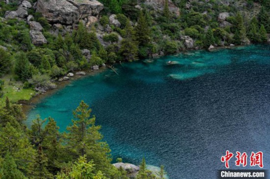 7月17日,西藏昌都三色湖景色。三色湖位于西藏昌都邊壩縣普玉村境內(nèi)。夏日,三色湖周邊郁郁蔥蔥,風(fēng)光秀麗。中新社記者 李林 攝
