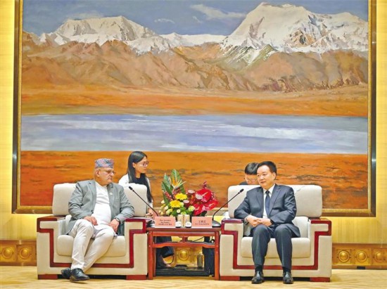 王君正指出,西藏與甘達(dá)基省同屬環(huán)喜馬拉雅地區(qū),地緣氣候相近、風(fēng)俗習(xí)慣相似,交流合作基礎(chǔ)深厚、潛力巨大。2023年,我率西藏自治區(qū)代表團(tuán)訪問尼泊爾、前往甘達(dá)基省考察,就促進(jìn)雙方務(wù)實(shí)合作深入交換意見,目前戰(zhàn)略性合作成果已逐步顯現(xiàn)。在中尼關(guān)系不斷深化的大背景下,西藏自治區(qū)與甘達(dá)基省有條件在新的起點(diǎn)上持續(xù)深化交流合作,實(shí)現(xiàn)互利共贏。要以高質(zhì)量共建“一帶一路”為主線,不斷拓寬合作領(lǐng)域,共同推動(dòng)口岸建設(shè)、文化旅游、航空、經(jīng)貿(mào)等交流合作,加強(qiáng)基礎(chǔ)設(shè)施互聯(lián)互通,推動(dòng)高水平對(duì)外開放邁出更大步伐,促進(jìn)雙方貿(mào)易持續(xù)健康發(fā)展。歡迎尼泊爾人民到西藏旅游觀光、交流合作,搭建起促進(jìn)兩地經(jīng)濟(jì)發(fā)展、人民交往交流的橋梁,建立更多友城、友協(xié)關(guān)系,鞏固兩地深厚友誼,推動(dòng)兩地關(guān)系行穩(wěn)致遠(yuǎn)、好上加好,共同邁向更加美好的明天。