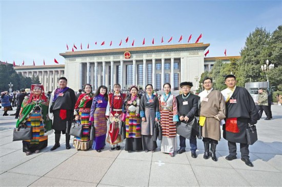 在舊西藏,占總?cè)丝诓坏?%的三大領(lǐng)主(官家、貴族和寺院上層僧侶)占有全部生產(chǎn)資料,而占總?cè)丝?5%以上的農(nóng)奴和奴隸沒有人身自由。西藏民主改革特別是西藏自治區(qū)成立以來,民族區(qū)域自治制度得到堅決貫徹,各族人民參與民主政治建設(shè)的熱情持續(xù)高漲:農(nóng)奴的后代當(dāng)選人大代表,通過人民代表大會制度參與國家治理;截至目前,全區(qū)四級人大代表42000余人中,藏族和其他少數(shù)民族約占89%;門巴、珞巴等人口不足萬人的民族,在全國及西藏人大均有代表——雪域高原各族兒女依法行使民主權(quán)利,真正成為命運的主宰者。