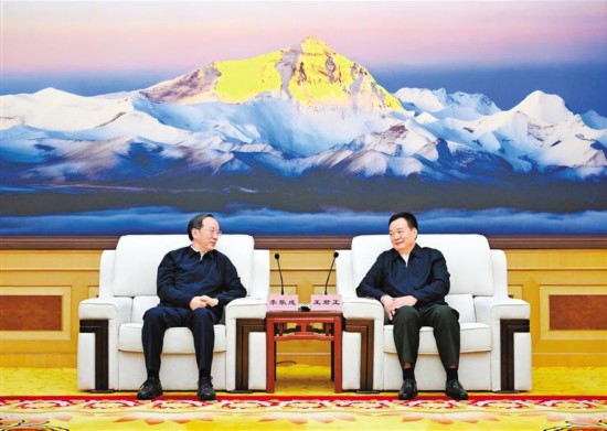 8月7日,自治區(qū)黨委書記王君正在拉薩與工業(yè)和信息化部黨組書記、部長李樂成一行座談。