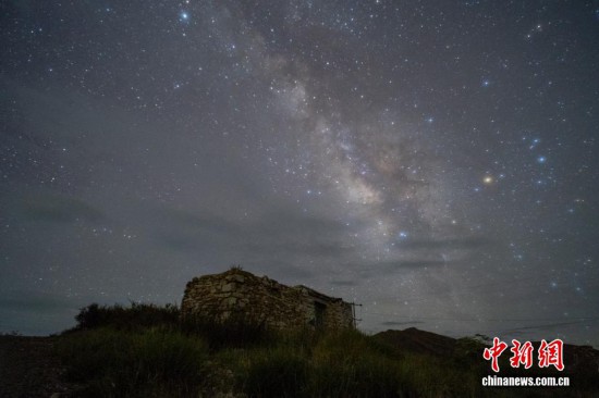 西藏山南羊卓雍錯(cuò)日托寺,因?yàn)楹0胃摺⑦h(yuǎn)離城市光污染,是理想的觀星之地。近日,海拔4400多米的寺廟夜空清澈,銀河清晰可見,璀璨星辰與羊卓雍錯(cuò)相映成趣,吸引游客和攝影愛好者觀星拍攝。圖為日托寺(燈光處)上空銀河璀璨。江飛波 攝