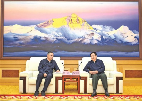 近日,自治區(qū)黨委書記王君正在拉薩與中國文聯(lián)黨組書記、副主席、書記處書記張政一行座談。