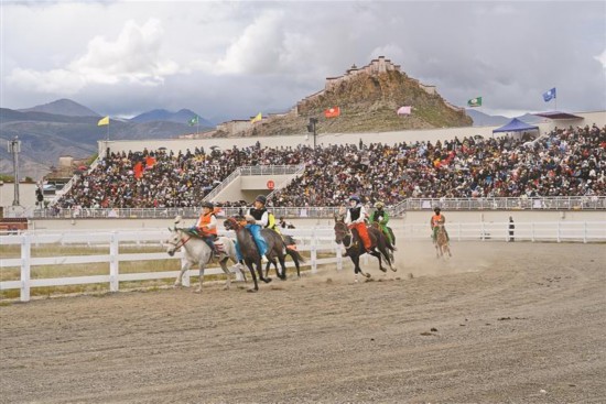 圖為達(dá)瑪節(jié)“重頭戲”——賽馬的初賽上,騎手們策馬馳騁、勇爭(zhēng)第一。記者 扎西頓珠 攝