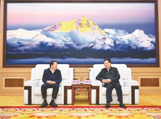9月10日,自治區(qū)黨委書(shū)記王君正在拉薩與交通運(yùn)輸部黨組書(shū)記、部長(zhǎng)劉偉一行座談。