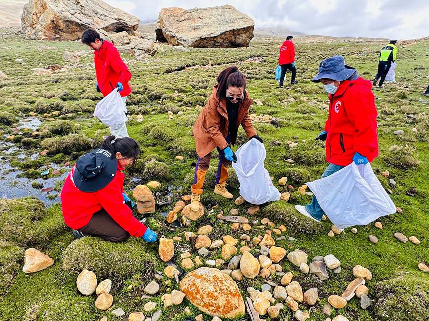 清潔環(huán)境護(hù)生態(tài)。清晨,工作人員拿著編織袋、提著鐵鍬游走在海拔5000多米的桑木卓草場(chǎng),對(duì)白色垃圾、飲料瓶、廢棄衣物等進(jìn)行地毯式清理,并引導(dǎo)群眾樹(shù)立生態(tài)環(huán)保意識(shí),共同維護(hù)草場(chǎng)環(huán)境衛(wèi)生。