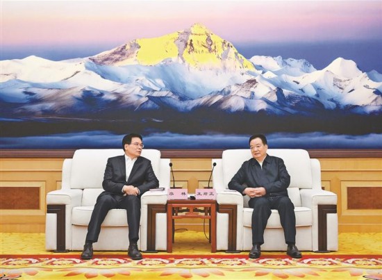 近日,自治區(qū)黨委書(shū)記王君正在拉薩與中國(guó)工商銀行黨委書(shū)記、董事長(zhǎng)廖林一行座談。