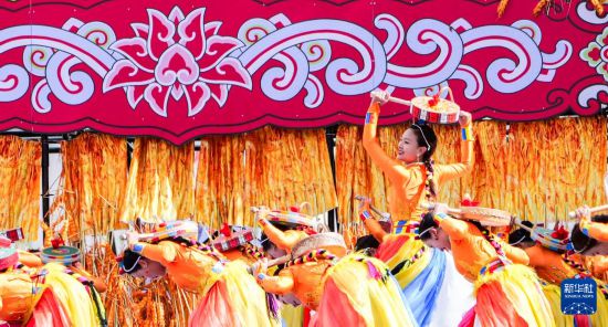9月15日,演員在開幕式上表演以糌粑為主題的女子群舞。新華社記者 黨黎 攝
