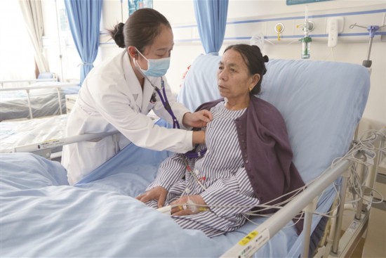 值班醫(yī)生為患者阿媽檢查身體情況。記者 芮怡星 攝