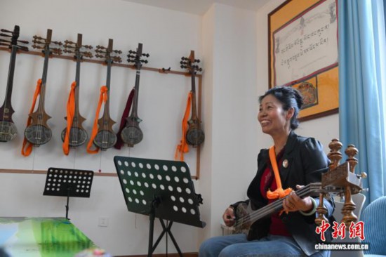 圖為民次旦卓瑪在八一社區(qū)老年活動中心學(xué)習(xí)扎念琴。貢嘎來松 攝
