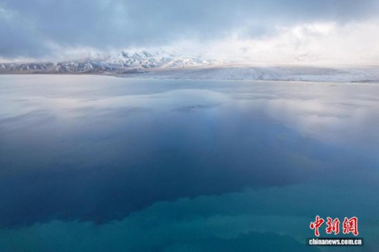 圖為10月9日,美馬錯(cuò)與遠(yuǎn)處的雪山風(fēng)光。江飛波 攝