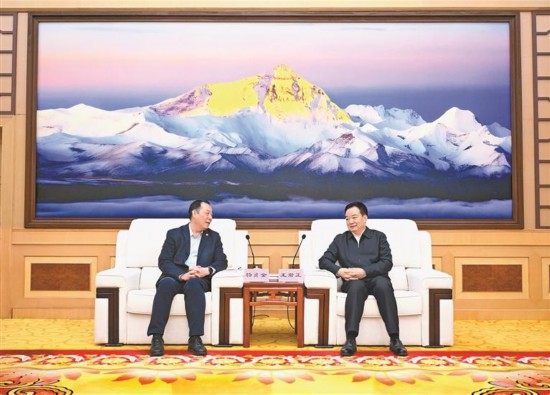 近日,自治區(qū)黨委書(shū)記王君正在拉薩與天津大學(xué)黨委書(shū)記楊賢金一行座談。