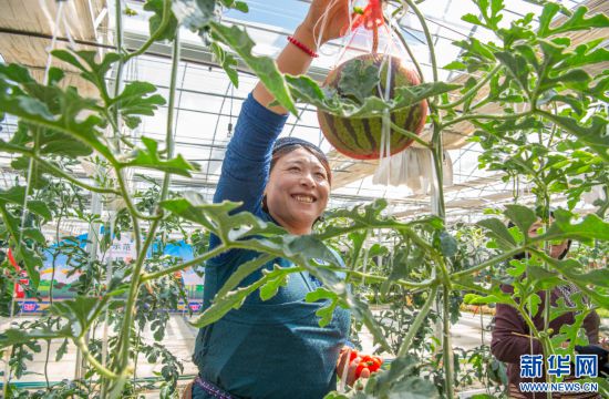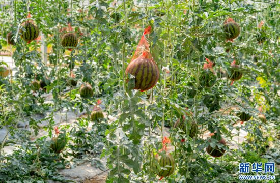 10月15日拍攝的墨竹工卡縣現(xiàn)代農(nóng)業(yè)示范園內(nèi)種植的西瓜。新華網(wǎng) 旦增努布 攝