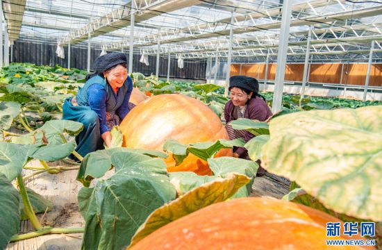 10月15日拍攝的墨竹工卡縣現(xiàn)代農(nóng)業(yè)示范園的太空南瓜特色展示區(qū)。新華網(wǎng) 旦增努布 攝