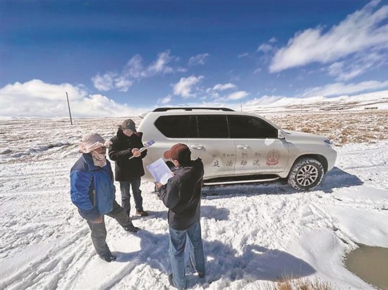 在雙湖縣,人民法院車載科技流動(dòng)法庭日行千里,加強(qiáng)與生態(tài)管護(hù)站、行政村協(xié)作,構(gòu)建“庭·站聯(lián)合”生態(tài)預(yù)警網(wǎng)格,及時(shí)發(fā)布司法保護(hù)令和環(huán)保倡議書。在安多縣,法院干警翻越唐古拉山,深入森布日生態(tài)搬遷安置點(diǎn),通過“加強(qiáng)聯(lián)絡(luò)暢渠道”工作法,與群眾促膝長談,傾聽民意;雁石坪人民法庭干警還主動(dòng)加入格拉丹東“長江第一滴水”志愿巡護(hù)隊(duì),聘請(qǐng)當(dāng)?shù)攸h員志愿巡護(hù)隊(duì)員擔(dān)任生態(tài)法治巡護(hù)聯(lián)絡(luò)員,凝聚保護(hù)青藏高原生態(tài)的法治合力。