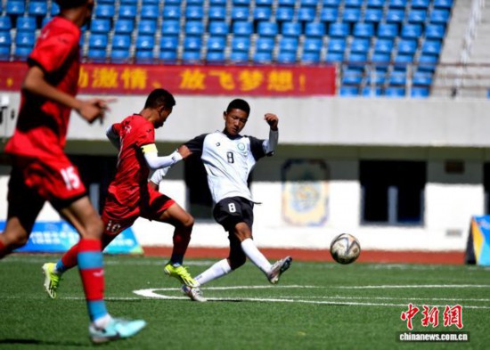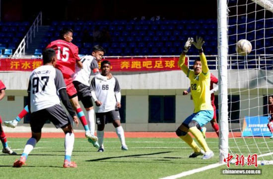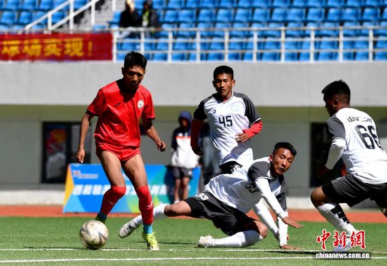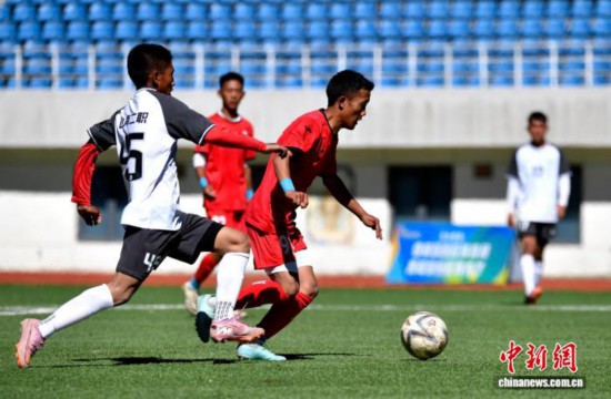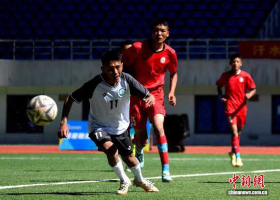 10月21日,2025年第四屆中國(guó)青少年足球聯(lián)賽西藏賽區(qū)男子U17(校園高中)組山南代表隊(duì)(白色球衣)與昌都代表隊(duì)(紅色球衣)比賽中。2025年第四屆中國(guó)青少年足球聯(lián)賽西藏賽區(qū)男子U13、U17(校園初、高中)組比賽將持續(xù)至10月22日,共有14支代表隊(duì)、300余名運(yùn)動(dòng)員參賽。各支代表隊(duì)以單循環(huán)賽制展開多輪激烈角逐。中新社記者 李林 攝