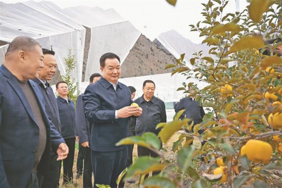 10月29日至30日,自治區(qū)黨委書記王君正深入林芝市、山南市,進(jìn)機(jī)關(guān)、訪農(nóng)戶、入廠房、看項(xiàng)目,宣講黨的二十屆四中全會精神,調(diào)研推動經(jīng)濟(jì)社會發(fā)展各項(xiàng)工作。這是王君正在林芝市朗縣洞嘎鎮(zhèn)巴基塘詳細(xì)了解高標(biāo)準(zhǔn)蘋果種植情況。記者 旦增西旦 攝