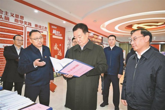 十一月十七日,自治區(qū)黨委書(shū)記王君正在自治區(qū)人力資源和社會(huì)保障廳調(diào)研。這是王君正在黨建活動(dòng)室,向干部職工宣講黨的二十屆四中全會(huì)精神,了解干部職工學(xué)習(xí)和相關(guān)工作開(kāi)展情況。記者 李洲 攝