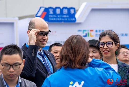 外國客商體驗智能眼鏡產(chǎn)品。人民網(wǎng) 王星攝