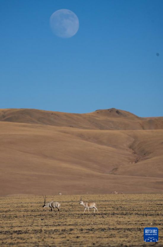 這是在羌塘國家級(jí)自然保護(hù)區(qū)拍攝的兩頭雄性藏羚羊(12月3日攝)。新華社記者 郭昱 攝