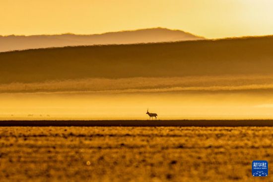 羌塘國家級(jí)自然保護(hù)區(qū)的一頭雄性藏羚羊沐浴在晨光中(12月4日攝)。新華社記者 姜帆 攝