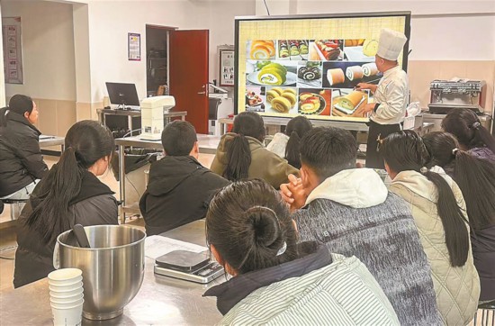 圖為在“西藏阿里地區(qū)鄉(xiāng)村振興旅游從業(yè)人員河北培訓(xùn)班”課堂上,教師正在為阿里地區(qū)職業(yè)技術(shù)學(xué)校學(xué)生進(jìn)行系統(tǒng)性培訓(xùn)。