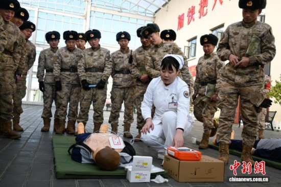 圖為護(hù)士現(xiàn)場教學(xué)AED操作使用。西藏軍區(qū)總醫(yī)院供圖