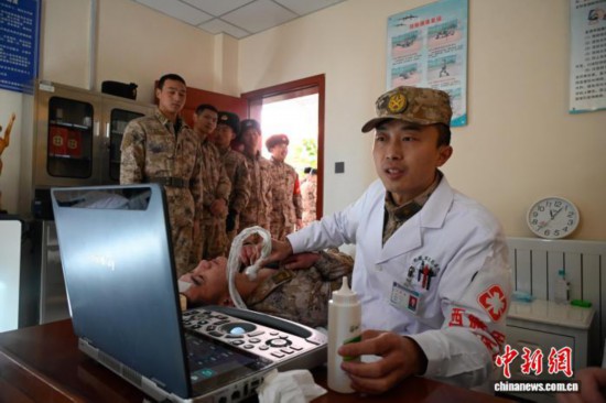 圖為醫(yī)生為部隊(duì)官兵檢查身體。西藏軍區(qū)總醫(yī)院供圖